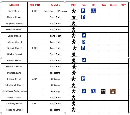Town of Kitty Hawk maintains many recreational dune cross-overs within the town limits where pedestrians can access the beach.